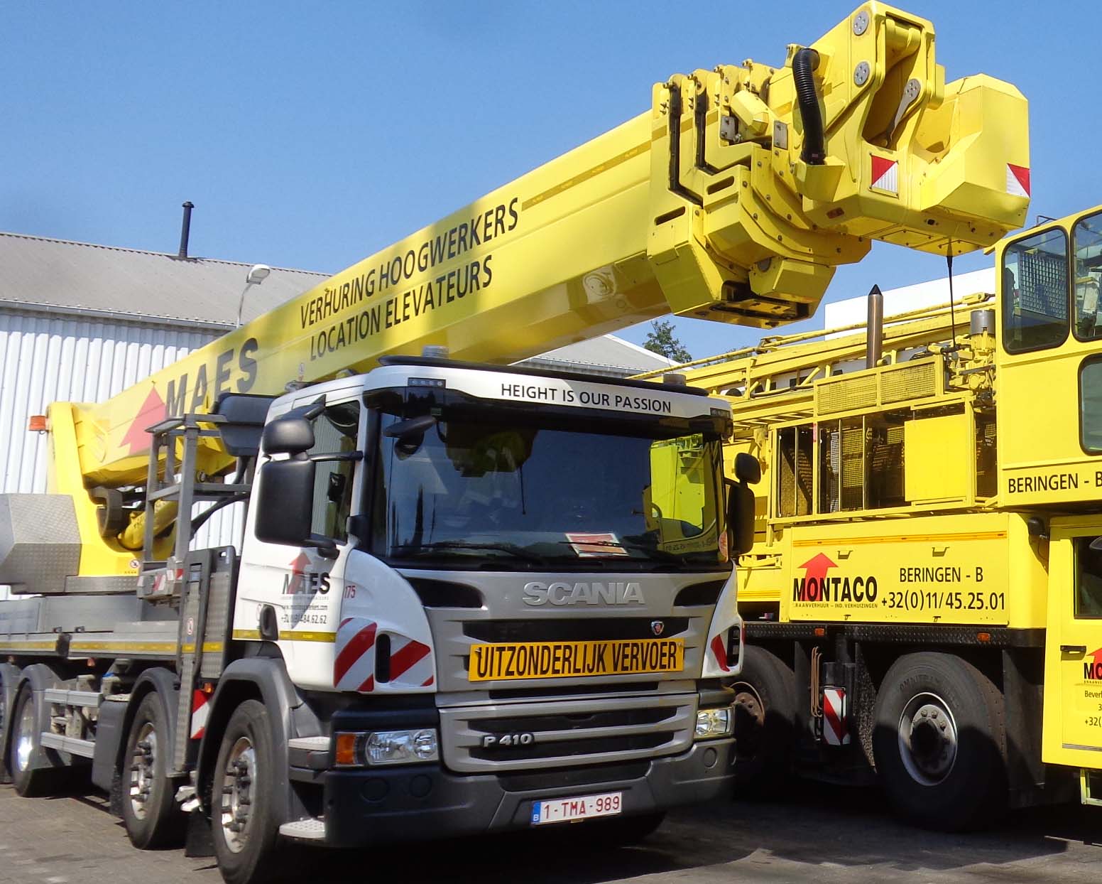 Maes Hoogwerkers verhuurt van PALFINGER hoogwerkers op vrachtwagens met reikhoogtes tot 90 meter. Daarnaast produceert de Oostenrijkse firma nog heel wat industriële toestellen. Zo is het de grootste fabrikant ter wereld van laadkranen, houtkranen en recyclagekranen, zowel voor op de weg als offroad.